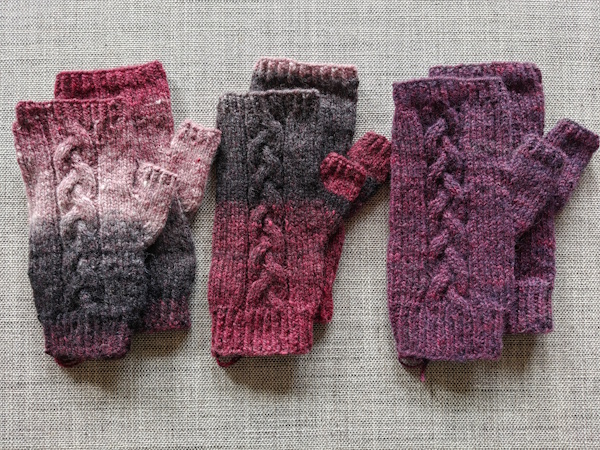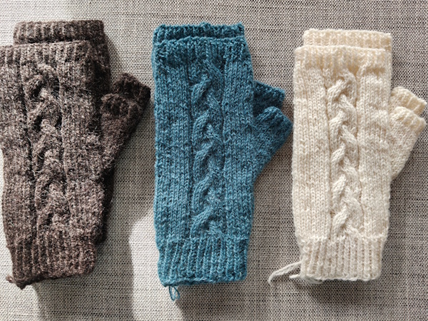 De är stickade i mjuk Alpaca och pärlorna är trädda på garnet i förväg och följer med i stickningen.
