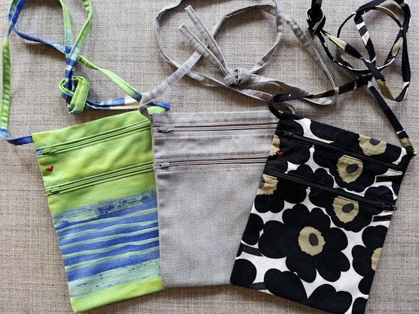 Jag har under våra resor saknat en liten väska, en extra ficka, för det allra nödvändigaste när vi går ut och äter på kvällen. På dagarna använder jag alltid ryggsäcken som jag sytt upp efter mina behov.